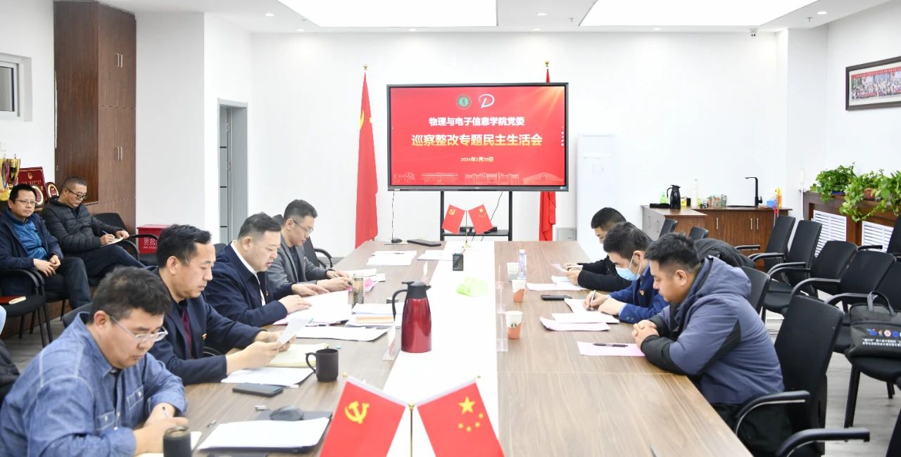 校党委巡察办主任白喜文点评讲话。他对此次专题民主生活会给予了充分肯定,认为本次民主生活会能够紧紧围绕主题,问题查摆准确,思想沟通严肃,整改举措务实,达到了统一思想、提升境界、团结鼓劲、凝心聚力的效果。他提出三点具体要求:一要以更大力度做好巡视整改“后半篇”文章,领导班子要当好头雁、作好表率,坚持“当下改”与“长久立”相结合,以“钉钉子”精神深查细改,确保整改成效经得起实践、群众和历史检验;二是物电院领导班子要继续探索党建与业务深度融合,以巡察整改为契机,落实好本科教育教学审核评估等各项工作;三要以更大力度加强思想政治建设,坚持用习近平新时代中国特色社会主义思想凝心铸魂,坚决抓好校党委工作要求落实,以实际行动坚定拥护“两个确立”、坚决做到“两个维护”。