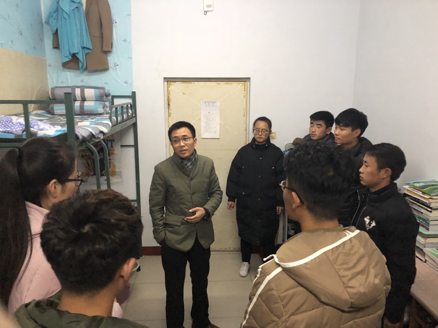 为进一步了解同学们的宿舍生活情况, 同时提高住宿生的安全意识,2017年12月5日晚,36365线路官网党总支副书记何小龙老师带领学生骨干,走访了17级物理汉班和材料物理班部分寝室。