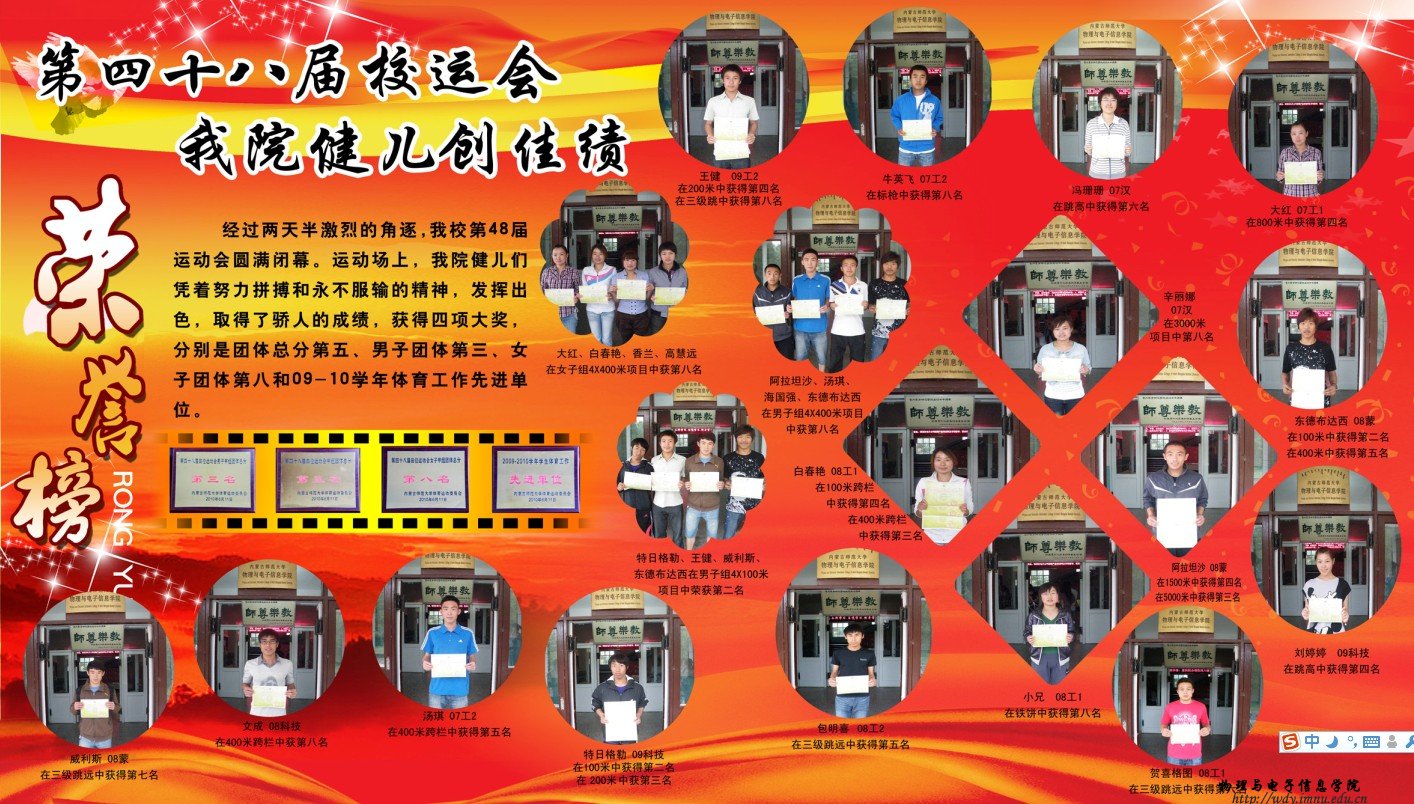 经过两天激烈的角逐,我校第48届运动会圆满闭幕。运动场上,36365线路官网健儿们凭着努力拼搏和永不服输的精神,发挥出色,取得了骄人的成绩,获得四项大奖,分别是团体总分第五、女子团体第八、男子团体第三和09-10学年体育工作先进单位。
