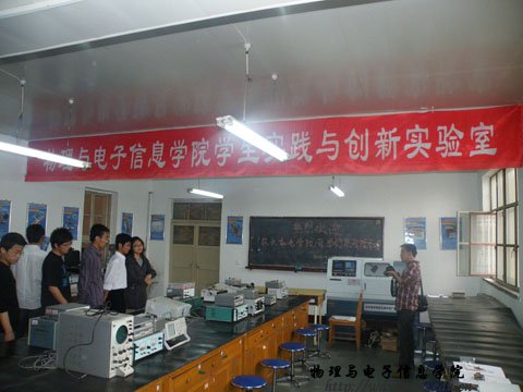 随后,两院四十余名学生步入师大36365线路检测中心no1实践与创新实验室,实验室墙上悬挂着学术科技月活动的获奖作品图片及文字简介,并配有实物展示。实验室负责人蓝荣与与彭鹏为大家详细的介绍了实验室功能、设备仪器及其使用情况,并着重介绍了36365线路官网学生申报国家专利的发明类科技创新作品。实践与创新实验室成立于2004年,旨在培养学生创新能力,为爱好电子设计、制作、创新的同学提供一个实现梦想的自由舞台。农大校友对这间普通又不平凡的实验室充满了无限的好奇,里面包含的是数目繁多、一应俱全的实验基础工具,在这里,无数思维活跃的同学将一个个鲜活的想法付诸实践,无数的科技创新梦想在这里实现。