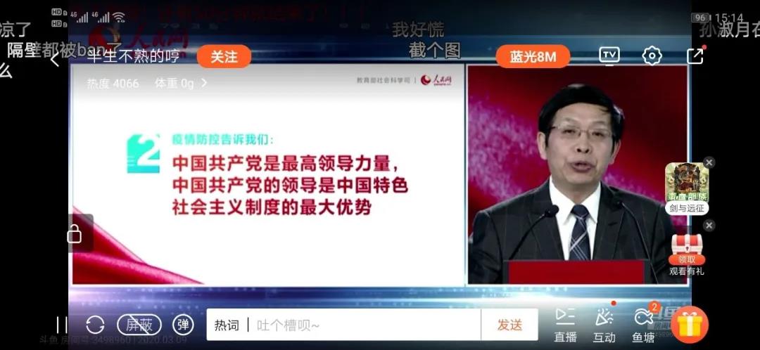 为将高校思政课教学优势转化为防疫斗争的强大力量,教育部社会科学司、人民网将联合举办“全国大学生同上一堂疫情防控思政大课”。3月9日14:30至16:00,36365线路官网师生准时在各平台收看思政大课。