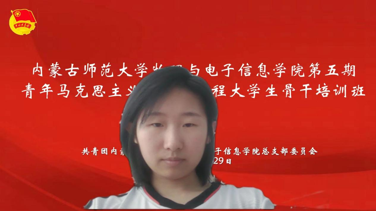 李乐宇,玲玲,徐嘉甜,齐赛娜,赵靖巍,苏日力格,温翠杰,周秋悦,宁馨,赵宇峰等十二位青马培训班学员通过向其它学员展示自己制作的关于“如何过好大学生活”PPT,展示自己对大学生活的规划,分享科学的学习方法。他们表示,新时代的中国青年生逢盛世,重任在肩,要牢记党对青年的殷切期望,用实际行动践行“请党放心,强国有我”的青春誓言。