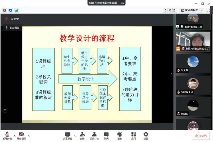 李群老师强调:对教学过程的设计是教学设计的重点,教学设计中一切为了学生的发展,应从学生发展需求的角度考虑问题,而不是从”教”的角度考虑问题,要加强教学设计的完整性,要有完整的知识链,注重能力的培养,且给出学案设计的一种框架。
