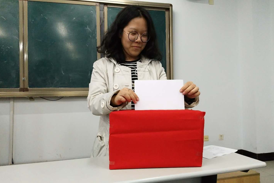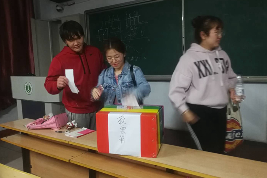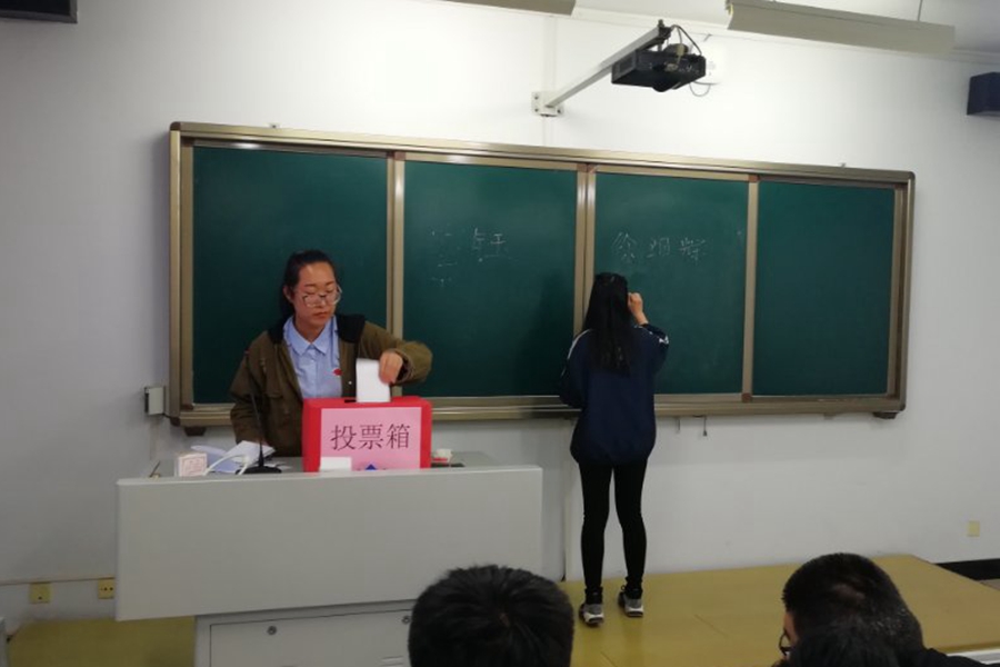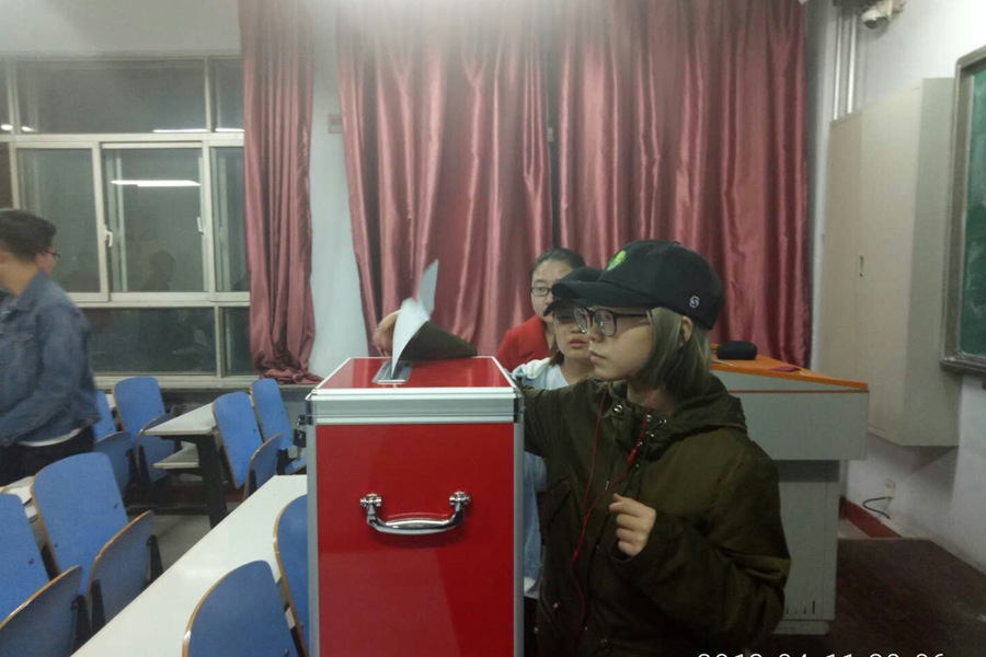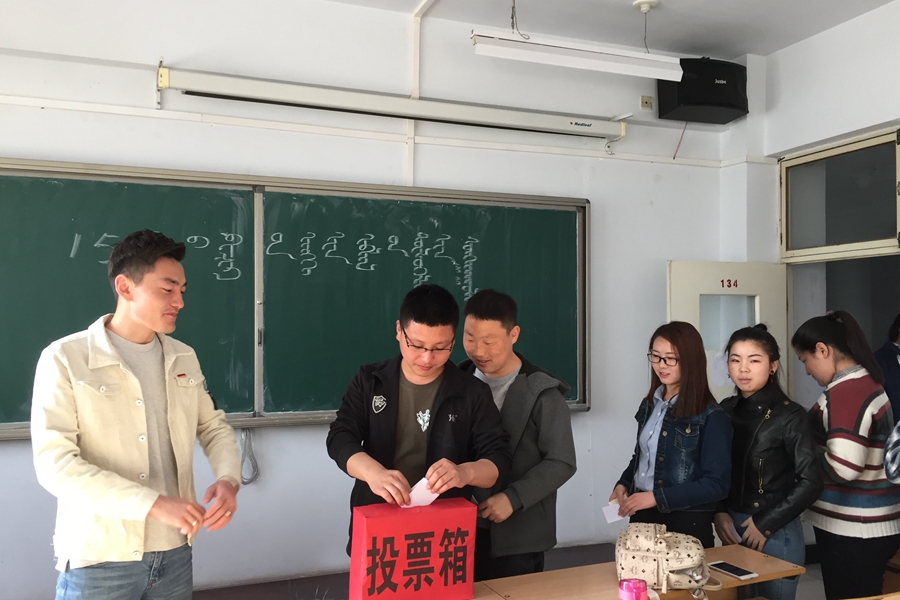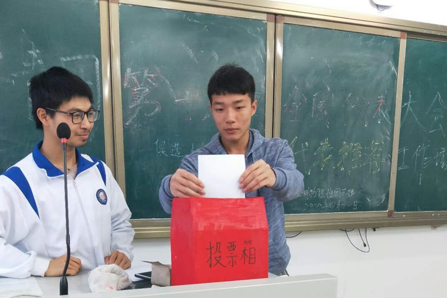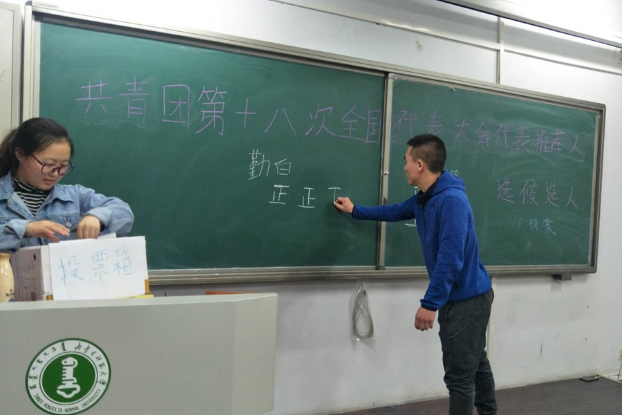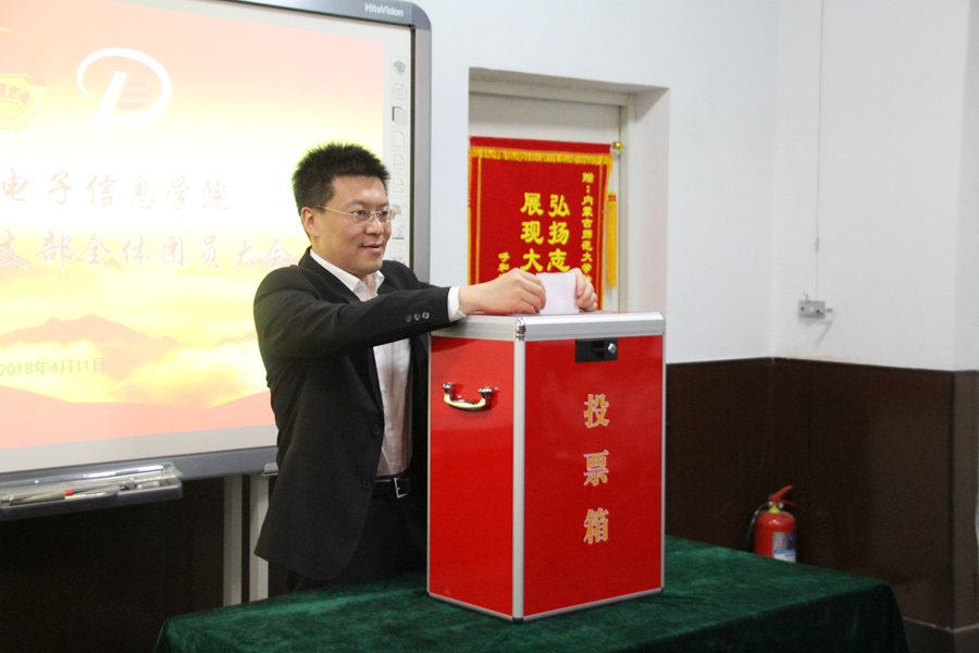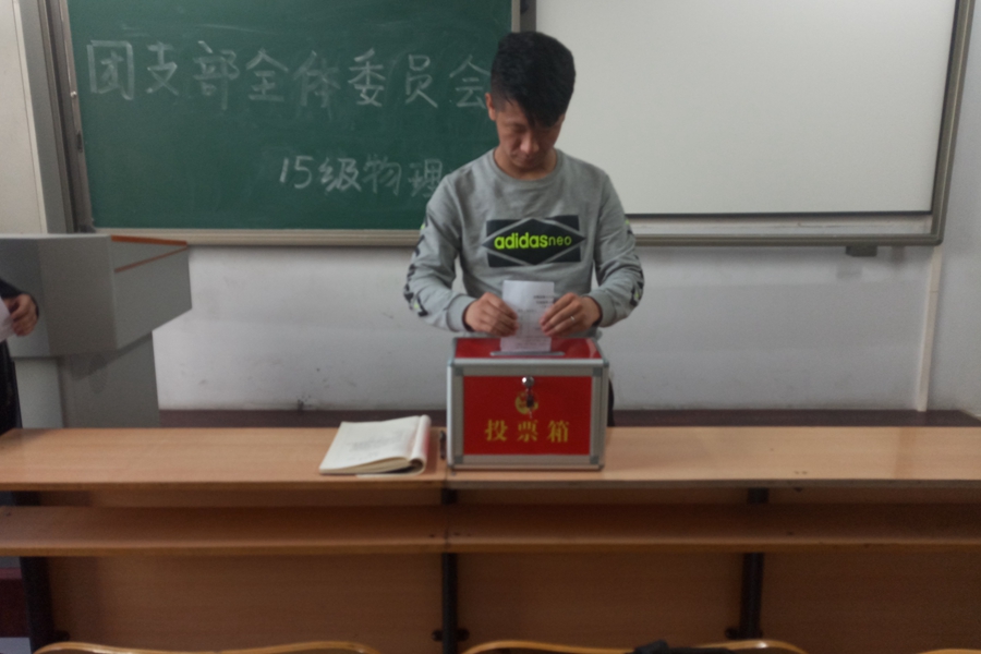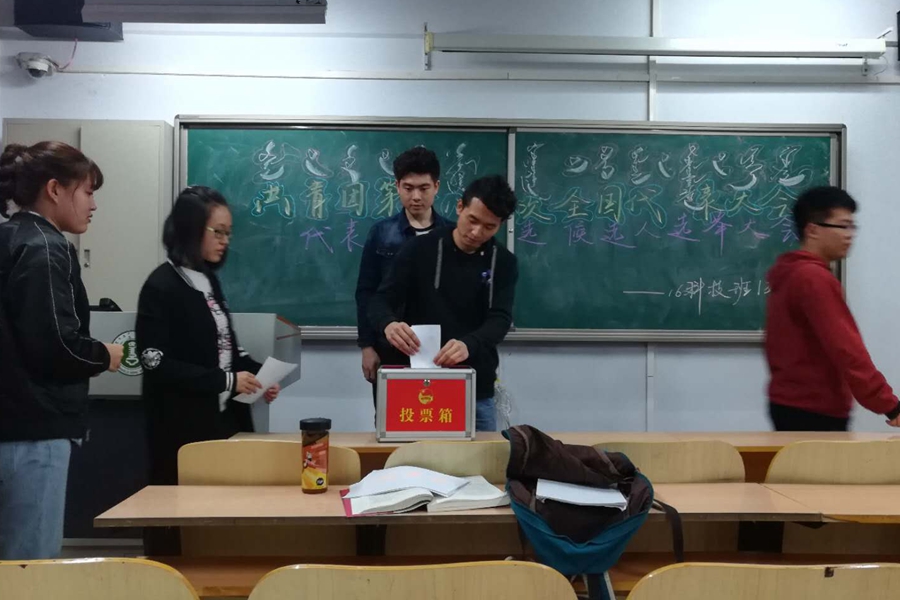 (我校团委书记贾世琦老师以一名普通团员的身份参与投票)