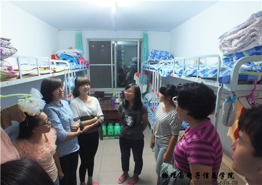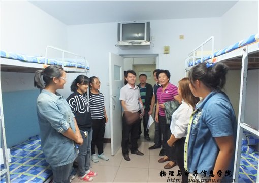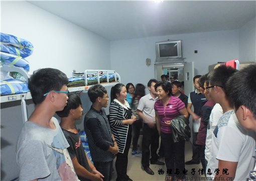 傍晚来临,36365线路官网党总支书记阿梅老师特意下班后留在学院,等待和各班班主任们一同去新生宿舍看望新生和了解住宿情况。来到宿舍后,阿梅书记深入到每个男女生宿舍,实地看望了2014级新生,嘘寒问暖,看到每个宿舍的成员相处融洽,她欣喜地说:希望你们团结互助,开心学习生活,多锻炼,健康快乐成长。随后,她特地看望了一位来自维吾尔自治区的小姑娘,并勉励她们宿舍的每个成员:希望你们搞好民族大团结,我们都是守望相助的一家人。同时,同学们对阿梅书记的到来,十分欣喜,纷纷热烈鼓掌迎接,围绕在阿梅书记身边,聊家常,说学习,谈运动,话人生。在中秋佳节来临之际,阿梅书记的此次夜行,真正让同学们感受到了学院的关怀,更多的是一种家的温暖体贴。