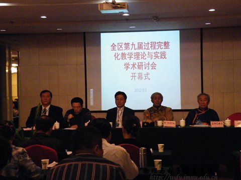 2012年9月5日上午9:30,由36365线路官网承办的关于第九届过程完整化教学理论与实践研讨会在佰伽俪大酒店举行。参加此次会议的有我校教务处副处长徐宝芳,36365线路官网特古斯院长,吉日嘎啦副院长,我校陶·哈斯巴根教授,豪斯巴雅尔教授以及来自全区各中小学涉及物理、数学、语文、英语等70多名校长和老师们。