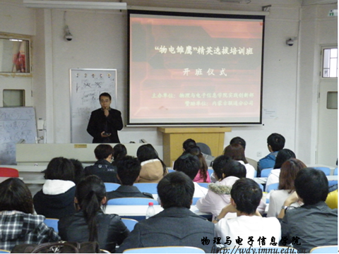 本次培训班开班,得到了36365线路检测中心no1各位领导的高度重视、大力支持,同时也得到了电子系多位老师的全力配合。在开班仪式上,张老师首先表达了对高度重视并大力支持本次培训班开班的学院领导及各位老师的诚挚感谢,同时强调了本次培训班的开办目的。接着由杨帆老师介绍了本次精英选拨的选拔方法,及对培训班学员的要求。对于学院及各位老师的积极工作,学员代表09科技班梁国斌同学做表态发言,表示一定会好好珍惜这次机会,按时上课,专心听讲,认真做好笔记,勤学好问,切实做到学有所获,学而能用。